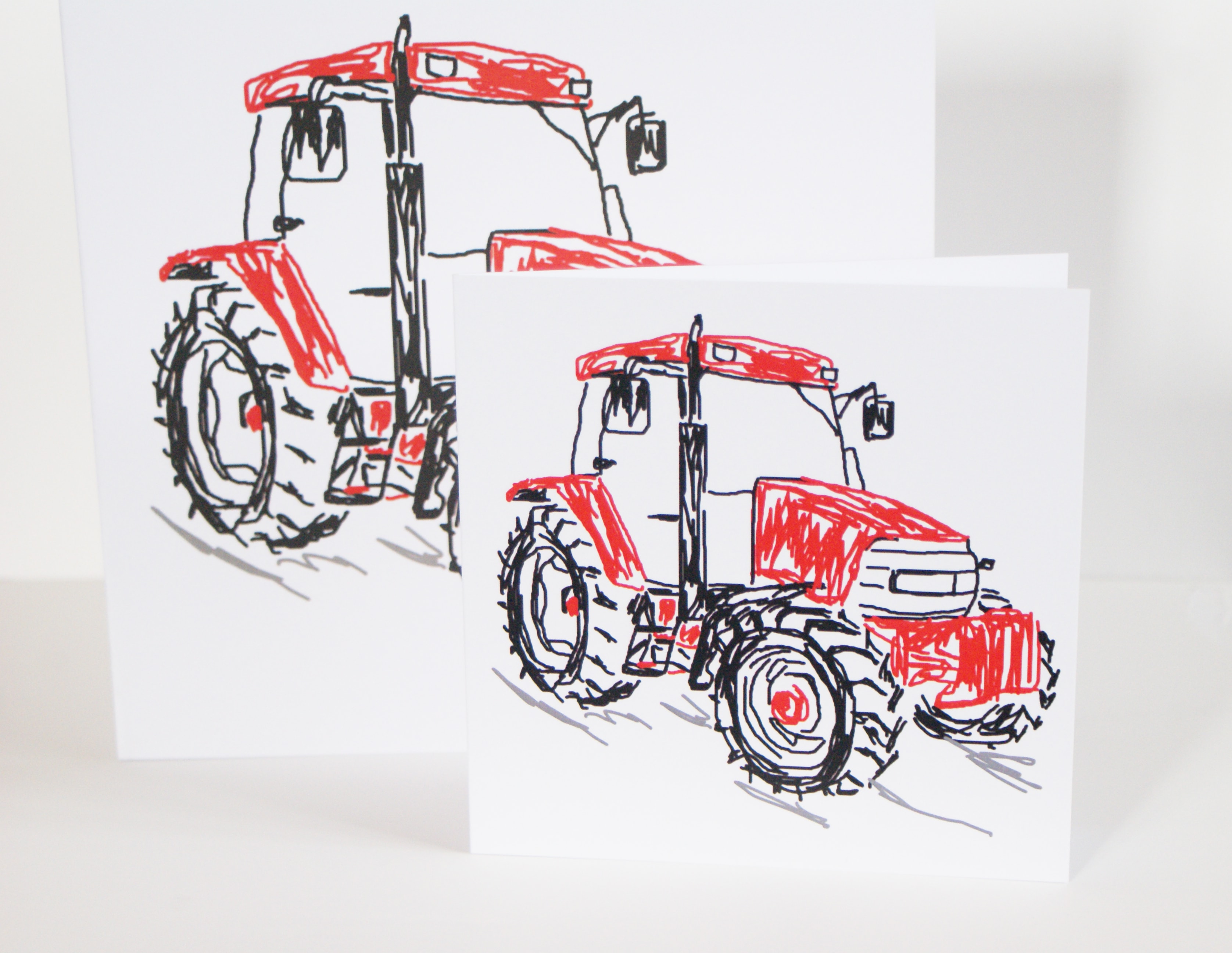 A recent request from a customer for a larger red tractor greetings card. Normally my cards are printed as 136x136mm cards but the customer wanted a 200x200mm card. This also meant having to make a handmade envelope large enough to fit the card. All in all a fun little task which was thankfully successful. The regular sized red tractor can be bought from my shop here: