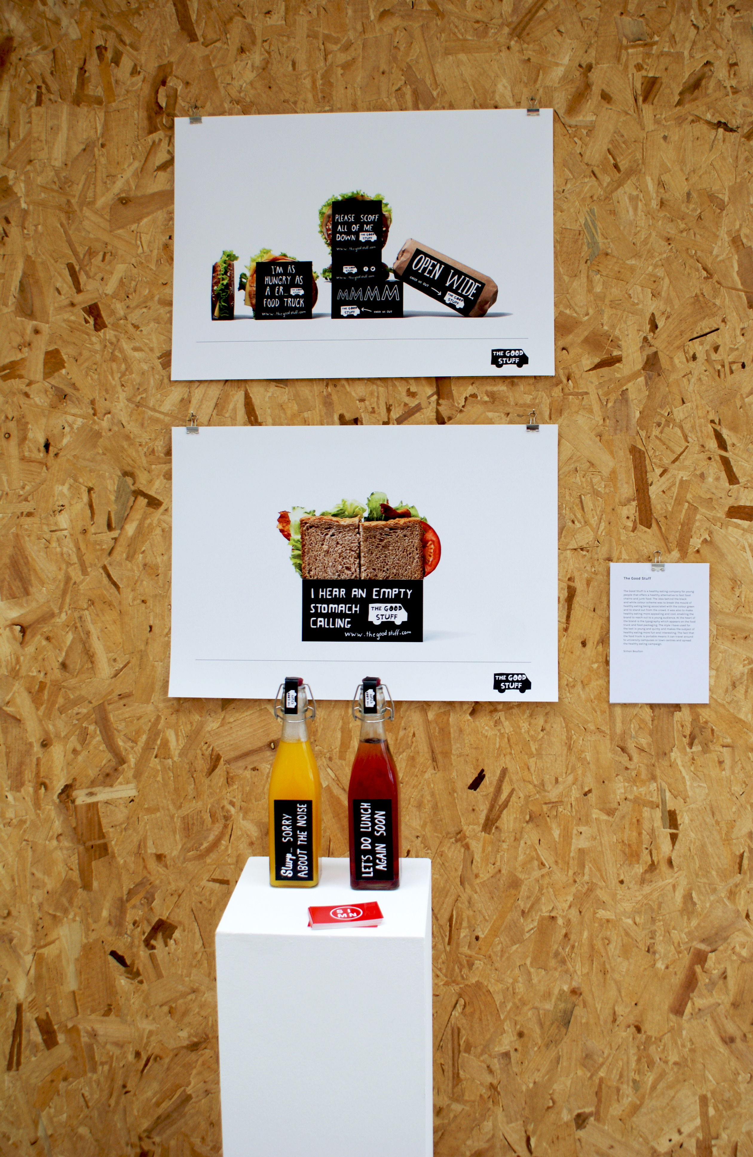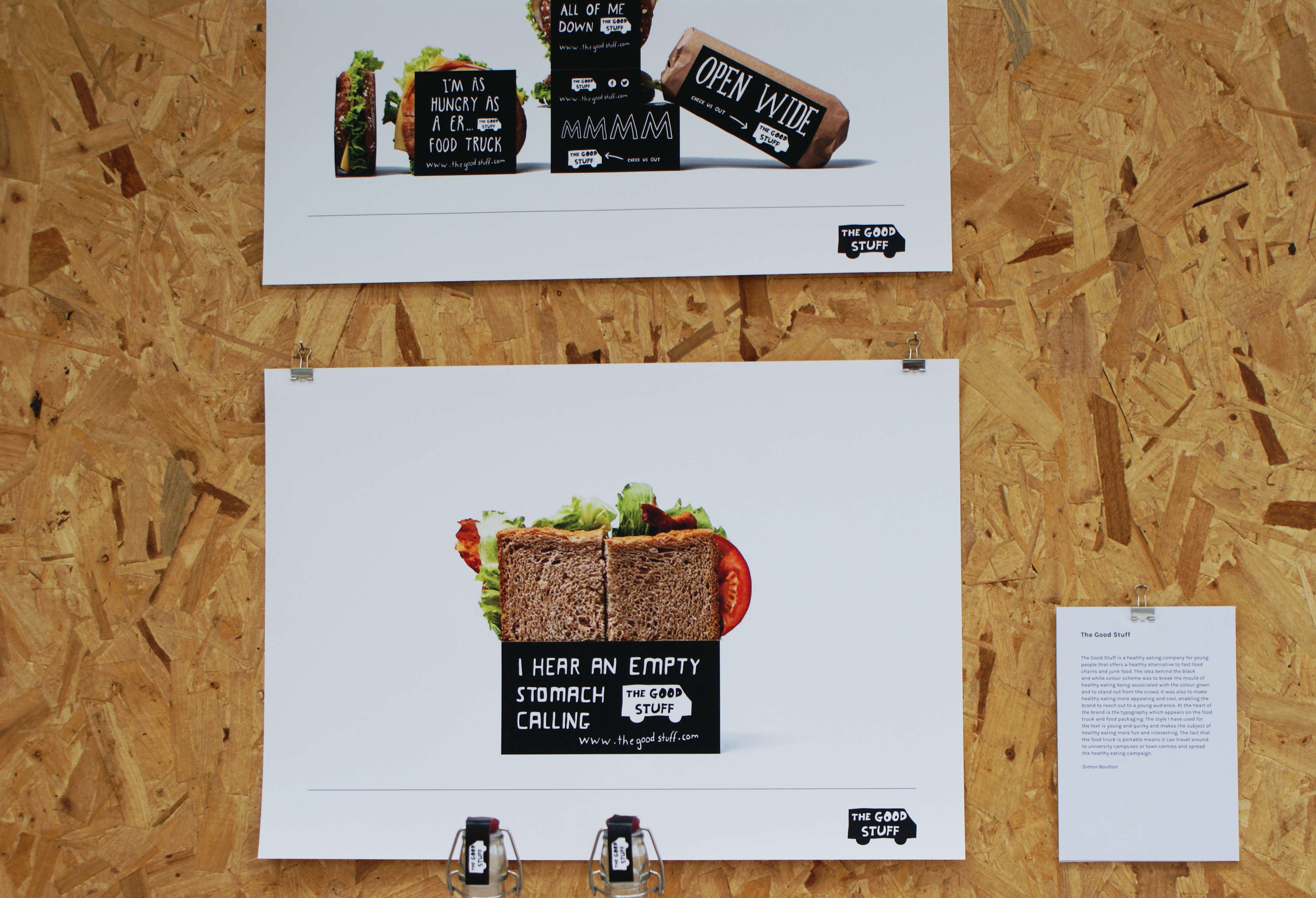 A collection of images of my work being displayed for the Graphic Communication degree show at Northampton University. This also includes my portfolio and business cards along with the The Good Stuff project.