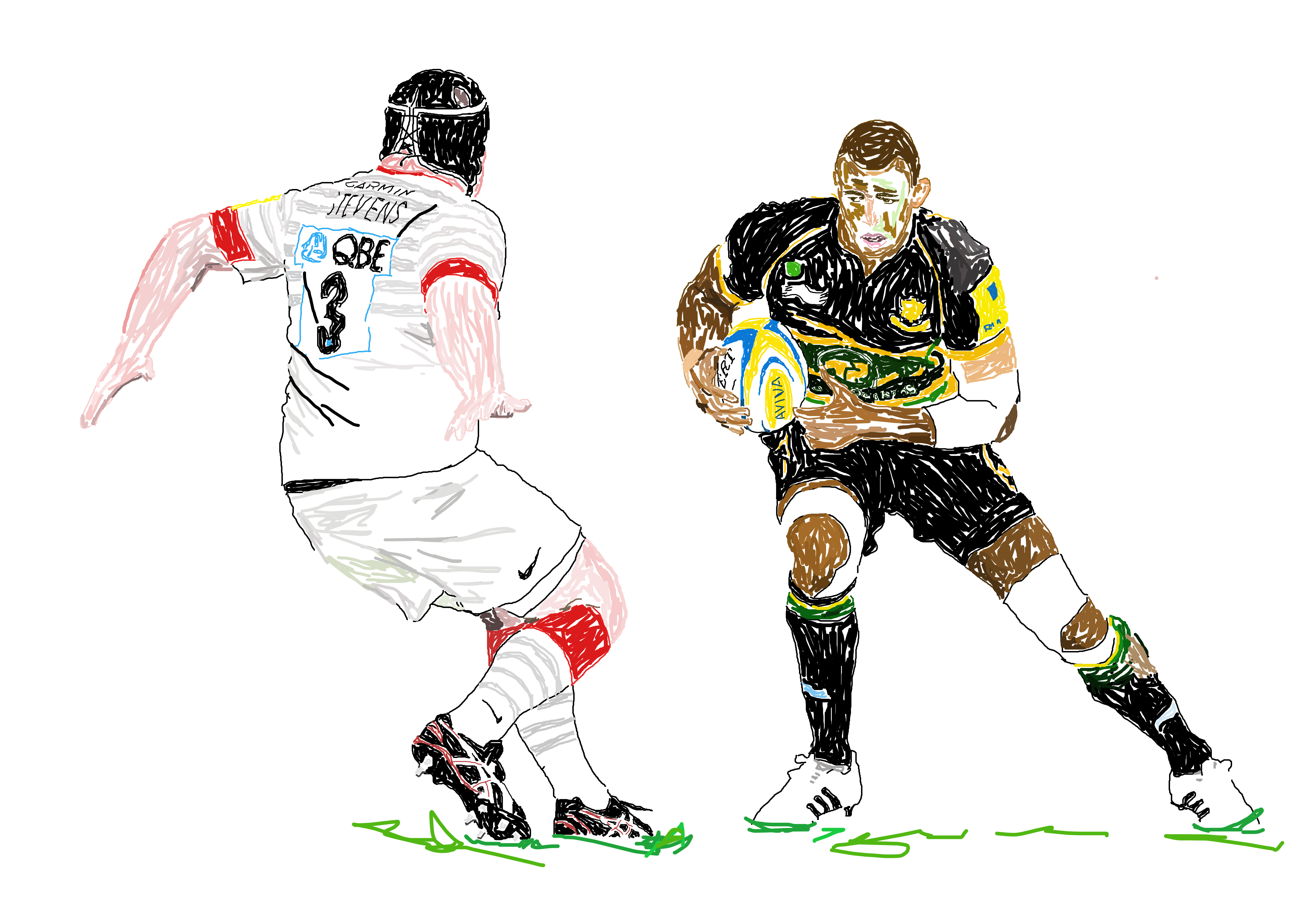 Courtney Lawes art February 22, 2013October 31, 2013 | Simon Boulton The giant frame of Courtney Lawes about to be tackled by Matt Stevens. Courtney Lawes